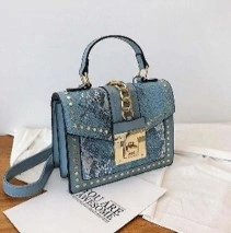 Product Title: Fashion Designer Lock Snakeskin PU Leather Handbag Custom Purses and Handbags Women with Rivet